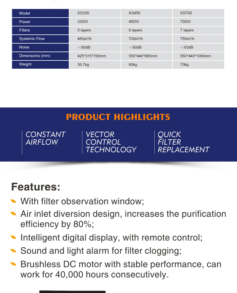 - Lưu lượng khí ổn định; Công nghệ điều khiển vector; Thay thế bộ lọc nhanh chóng.